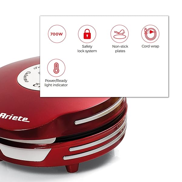 Ariete 182.0 Piastra Elettrica, 700 W, Plastica, Rosso