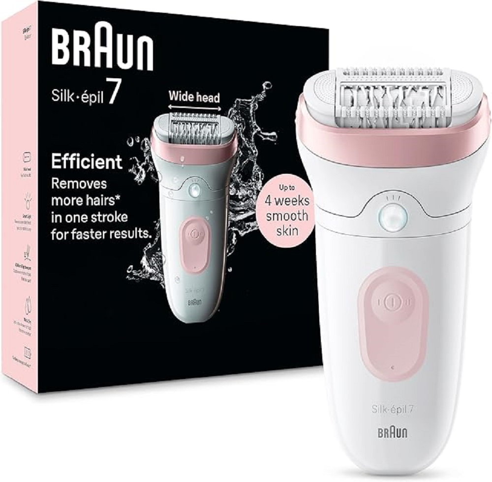 - Braun Silk-épil 7 Depilatore Donna, Epilatore Elettrico Donna Con Testina Ampia Per Una Epilazione Semplice, Wet & Dry, Pelle Liscia a Lungo, 7-000, Bianco/Rosa