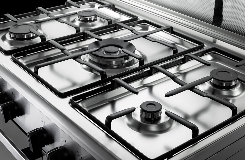 - Piano cottura a gas da 90 cm in acciaio inox, 5 bruciatori gas di cui 1 doppia corona, manopole in metallo spazzolato.