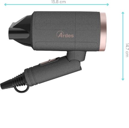 - Il suo design compatto e il manico pieghevole consentono di risparmiare prezioso spazio in valigia, rendendolo ideale per viaggiare leggeri. Nonostante le dimensioni ridotte, questo phon da viaggio non trascura la potenza, con un motore DC ultra-leggero che eroga una potenza di 1600 W.
