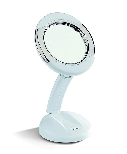 Laica MD6051 Specchio per il Trucco e il Make Up del Viso , Retroilluminato, Richiudibile, Ingrandimento X3, Diametro Specchio 12, 5 cm