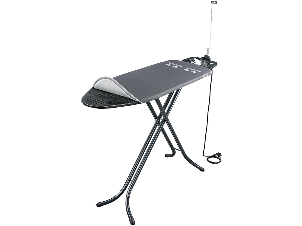 - Il supporto fisso per ferro da stiro è dotato di una pratica presa elettrica e di un supporto per cavo, in modo da poter stirare senza fastidiosi cavi