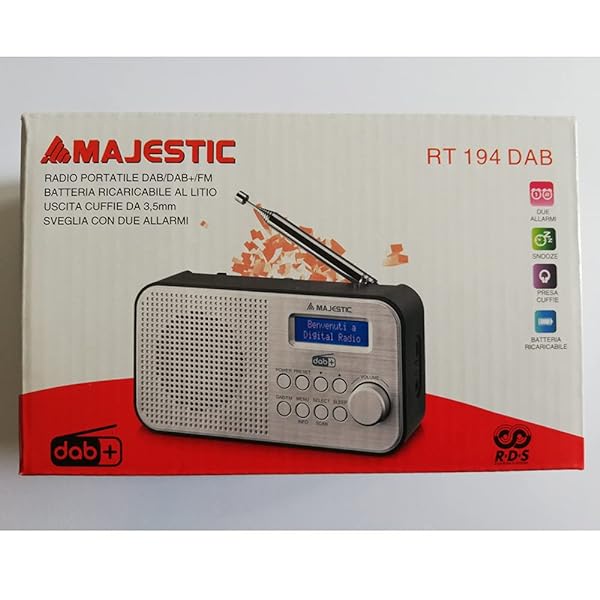 Majestic RT 194 DAB – Radio portatile DAB/DAB+/FM display LCD, batteria ricaricabile, uscita cuffie, sveglia due allarmi e tre suonerie, nero