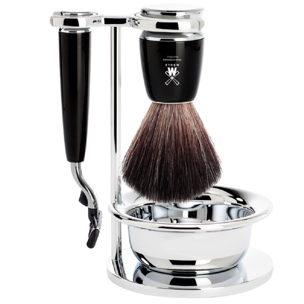 - Set barba pennello e rasoio Muhle Ritmo mach 3 resina nera