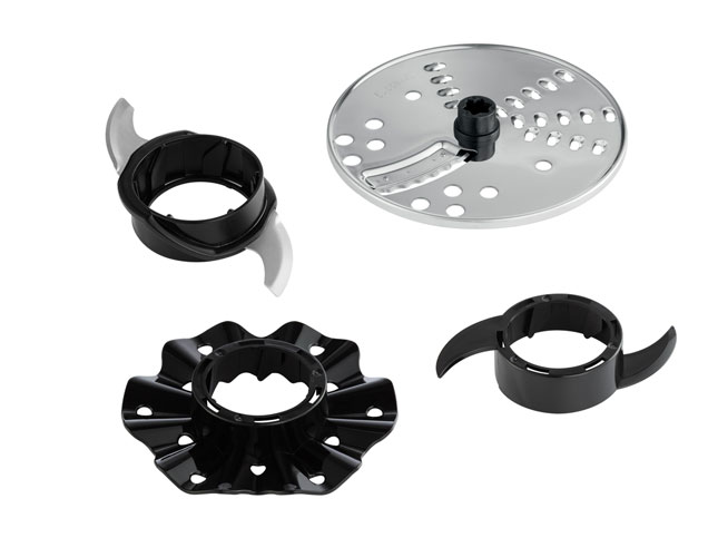 accessori inclusi: lama a S in acciaio inox, disco reversibile per affettare/grattuggiare, lama da impasto e disco emulsionatore