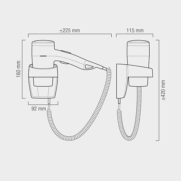- Asciugacapelli super-compatto da montare alla parete, ideale per i piccoli bagni degli alberghi